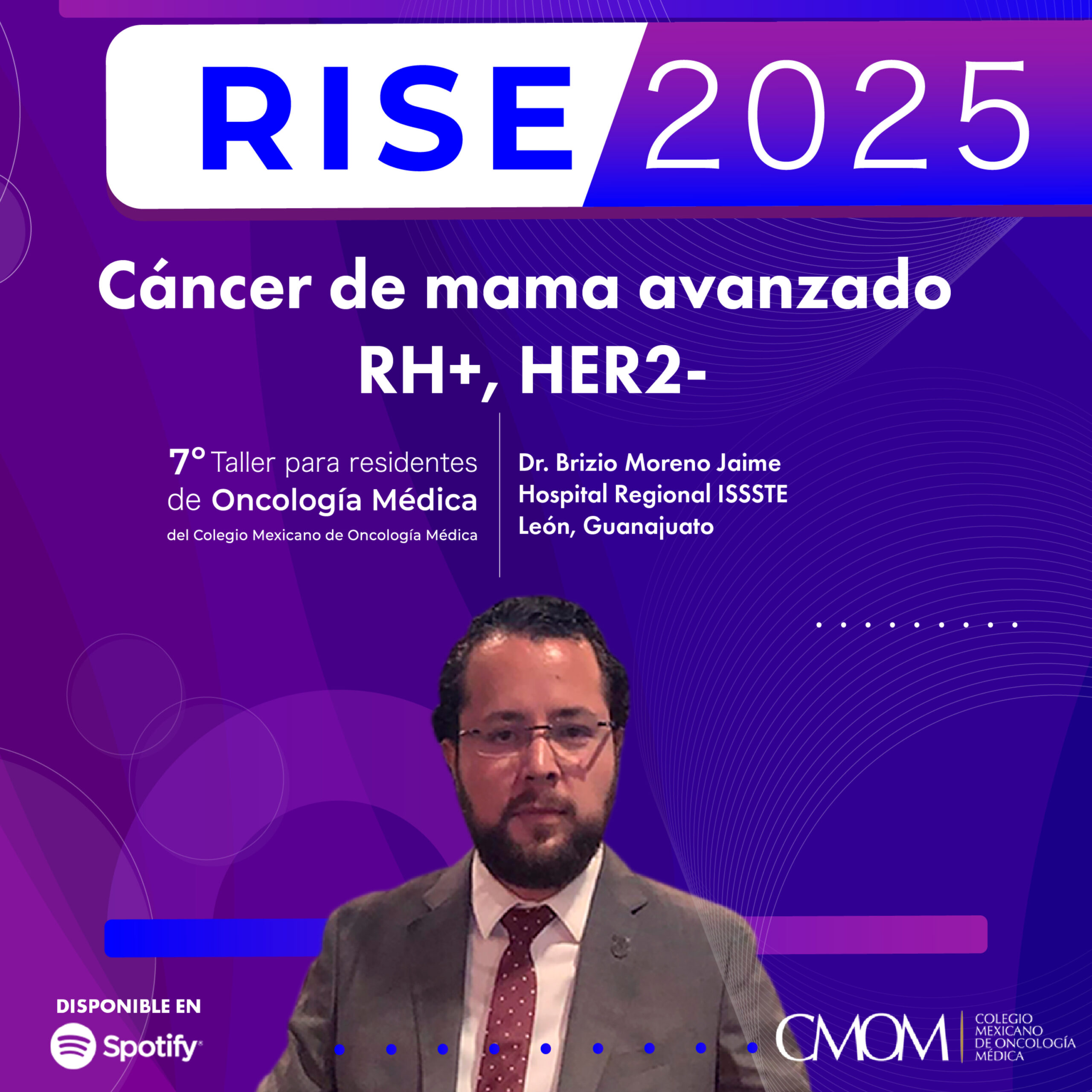 El Dr. Brizio Moreno Jaime, oncólogo médico en el Hospital Regional ISSSTE, León en Guanajuato, México, nos habla durante el 7º Taller RISE 2025: Residents In Search of Excellence del Colegio Mexicano de Oncología Médica, sobre cáncer de mama avanzado RH+, HER2-.