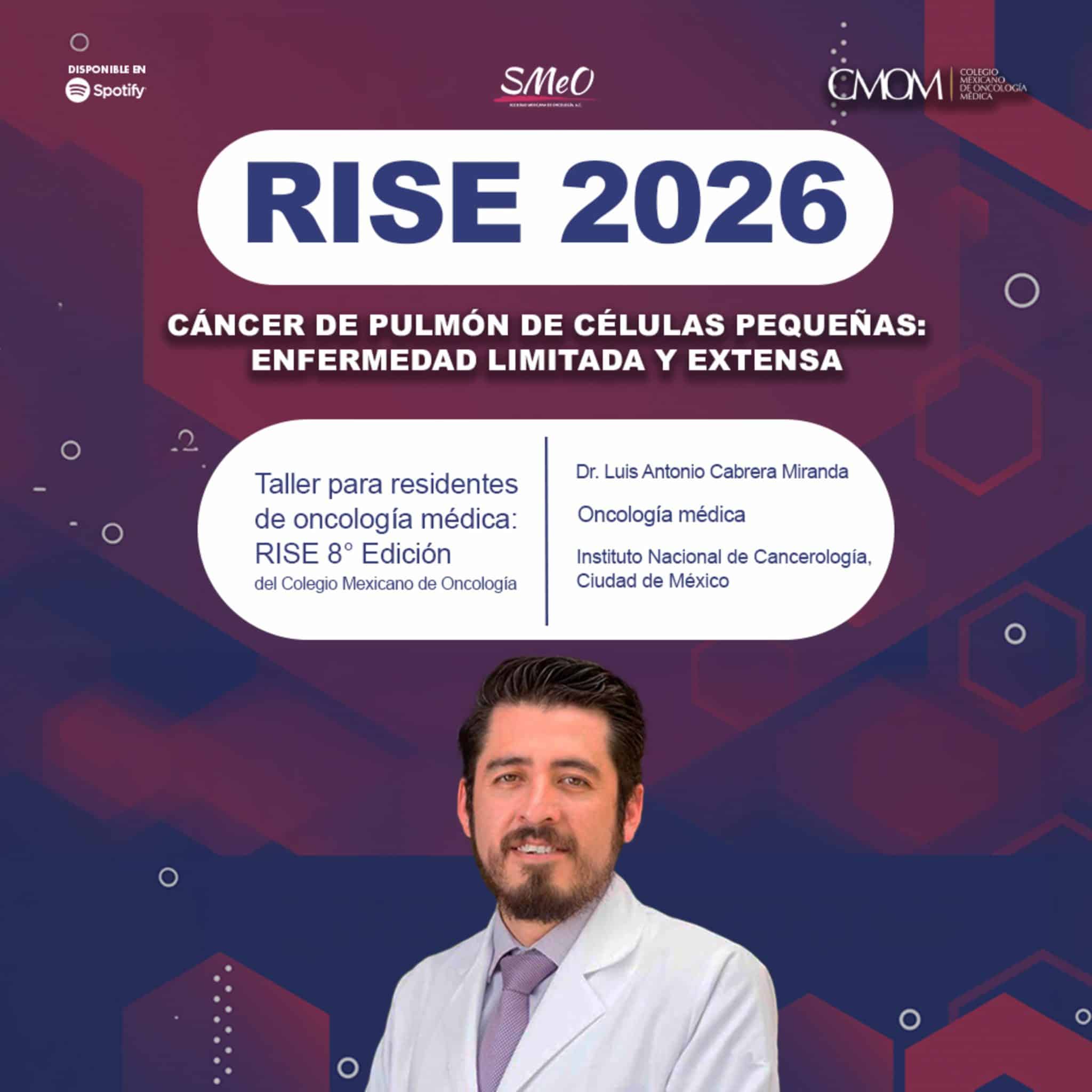 El Dr. Luis Antonio Cabrera Miranda, oncólogo médico del Instituto Nacional de Cancerología, en la Ciudad de México, participa en el Taller de Residentes de Oncología Médica RISE, 8.ª edición, donde aborda el cáncer de pulmón de células pequeñas en enfermedad limitada y extensa.